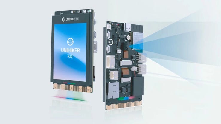 «Το UNIHIKER K10 είναι μια συσκευή εκμάθησης τεχνητής νοημοσύνης σχεδιασμένη για εκπαίδευση», λέει η εταιρεία για τη δημιουργία της. «Ενσωματώνει έγχρωμη οθόνη 2.8 ιντσών, Wi-Fi και Bluetooth, κάμερα, μικρόφωνο, ηχείο, φως RGB, αισθητήρα θερμοκρασίας, αισθητήρα υγρασίας, αισθητήρα φωτός και επιταχυνσιόμετρο. Διαθέτει επίσης υποδοχές άκρων και διεπαφές Gravity IO, επιτρέποντας τη σύνδεση και τον έλεγχο διαφόρων ψηφιακών, αναλογικών, I2C και UART αισθητήρων και ενεργοποιητών».